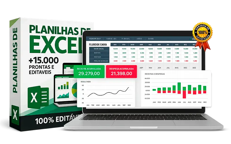 Economize tempo e dinheiro com um pacote com +15mil Planilhas e Dashboards Profissionais.